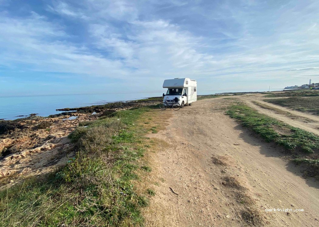 Einen Strand würde ich das nicht nennen, eher ein ausgedehntes ParkAreal für die Fischer, um direkt ans Meer zu kommen. Deshalb ist hier zu Fischzeiten auch ziemlich viel Betrieb. Trotzdem schön, hier zu stehen und ihnen beim Fischen zu zu sehen. Sogar im Winter wird getaucht! Allerdings liegt der Platz direkt neben einer Straße, die gut befahren ist. Leise ist es also nicht.
