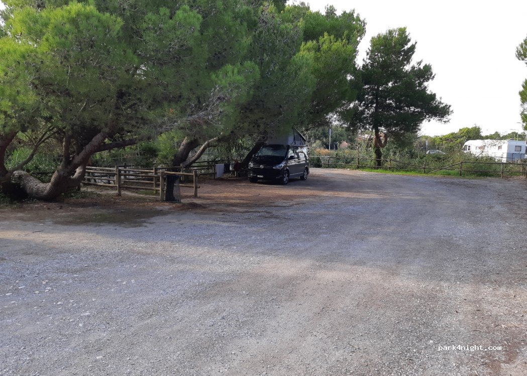 Ottimo parcheggio per macchine basse (no camper). Manca solo l'acqua ma durante il giorno è aperto il bar con servizio bagno e doccia. Silenzioso, a 30 metri dal mare, all'ombra e con secchi per la spazzatura.
