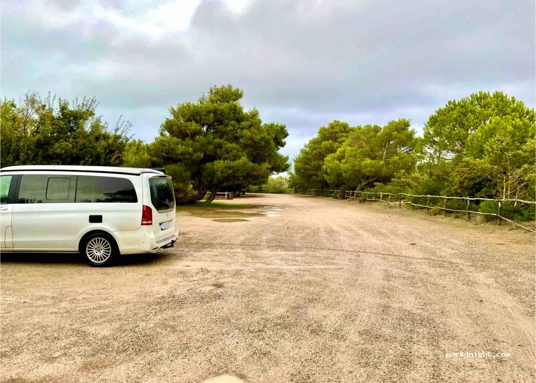 Parcheggio GRATUITO(anche il giorno) a pochi metri dalla spiaggia. Musica del LunaPark alta fino alle 00:30. Dopo la mezzanotte e fino all’alba molte auto in movimenti. Qualche pescatore e molti ragazzi che andavano in spiaggia. Bello però svegliarsi ed essere in spiaggia subito. I camper bassi e i van possono trovare ombra sotto le tamerici. Abbiamo lasciato il van parcheggiato anche di giorno.