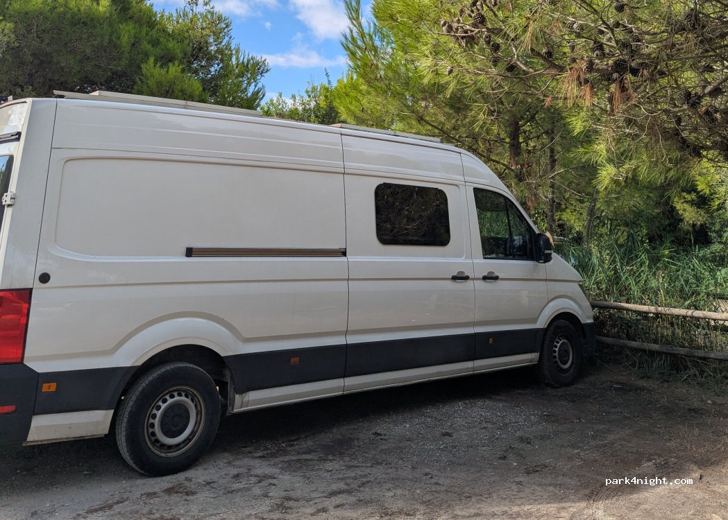 5. - 7.11.2025 Parkoviště pod piniemi pouze pro auta kratší 5 m. Většina míst je pod stromy, je tedy třeba myslet i na výšku auta. Přední parkoviště u restaurace, která už byla touto dobou zavřená, je vhodné i pro větší auta. Krásná pláž. Naprostý klid.