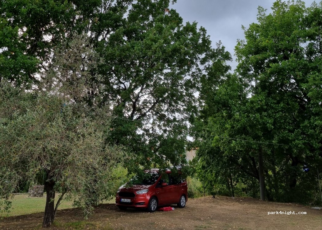 Ein gepflegter und sehr ruhiger Stellplatz in der Natur am Ortsrand, neuwertige gepflegte Sanitäranlage inmitten von Olivenbäumen. Sehr freundliche Gastgeberin/ Gastgeber. Nur 4 Sterne, da die Schwarzwasser und Grauwasserentsorgung nicht auf dem Gelände direkt, möglich ist. Wir waren 3 Nächte dort und haben uns sehr wohl gefühlt.