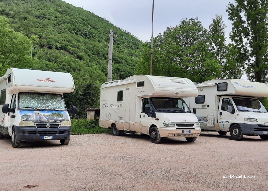 ottimo parcheggio per visitare il borgo di Rasiglia. abbiamo sostato due notti nella tranquillità. Anche se non ci sono servizi nel parcheggio, due o tre notti si riescono a fare senza problemi. area pianeggiante con ampi spazi di manovra. l'accesso è semplice anche per mezzi più grandi ma l'uscita è fastidiosa a causa di alcuni rami un pò bassi e per la presenza di buche.