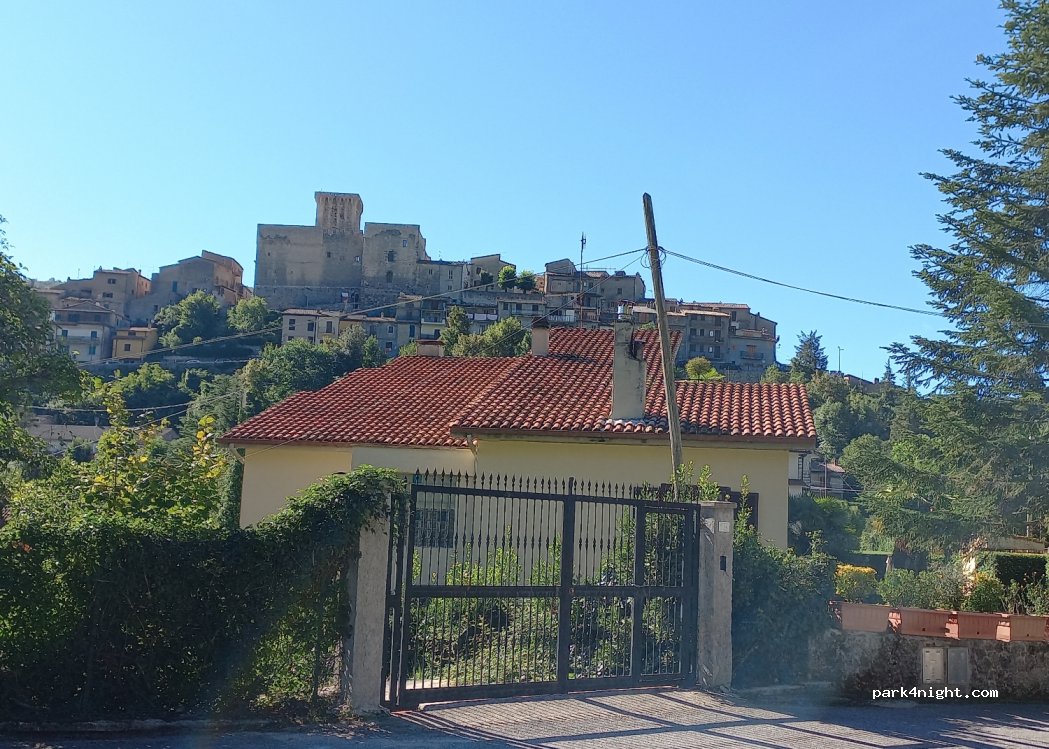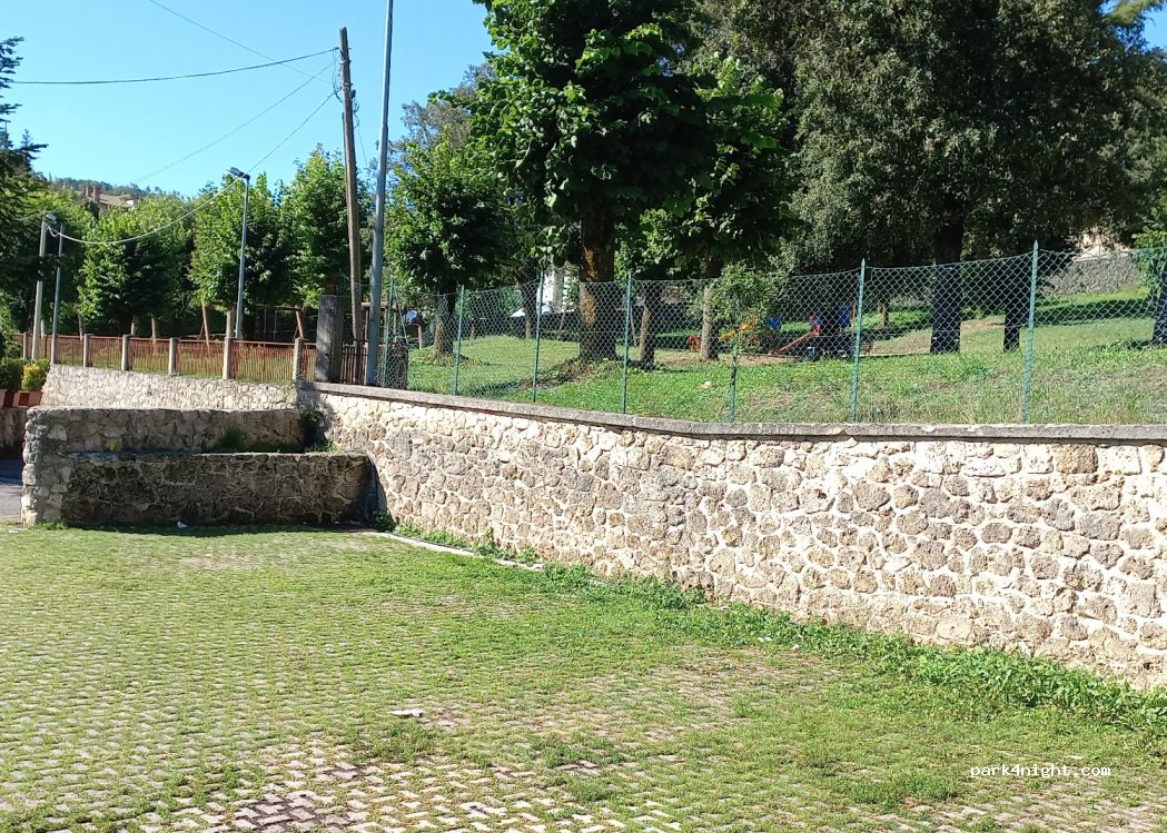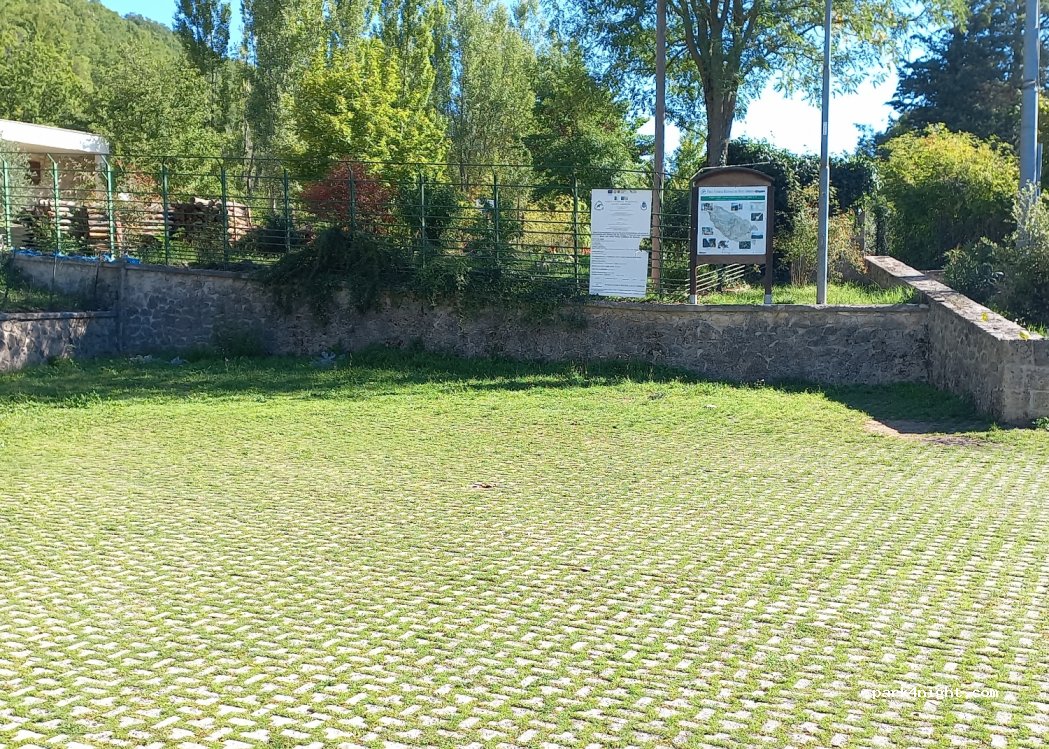 Official car park for the Simbruini National Park centre. Nice place for campers. slightly sloping. 200 m from shops & water (for bottles not tank) near a playground and a good pastry shop.