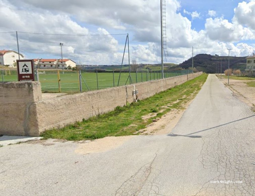 Presso il campo sportivo. Scarico un pò scomodo. Non ho verificato se la corrente funziona. Al momento della mia visita non c'era acqua.