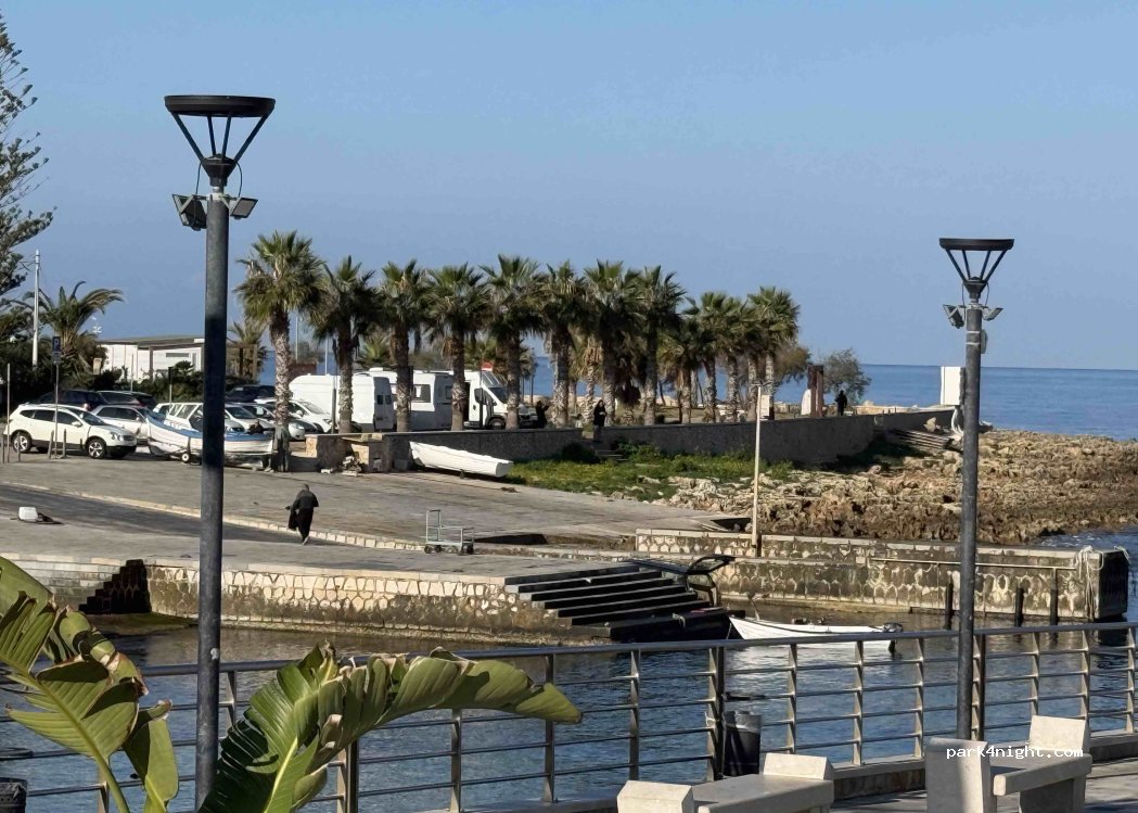 Fuori stagione posto splendido e accogliente: si dorme con il solo rumore del mare e una vista splendida. Dal 1 maggio al 30 settembre a pagamento. Non adatto a camper di grandi dimensioni, perché gli stalli sono quelli da macchina, forse un po’ più grandi, ma non molto.