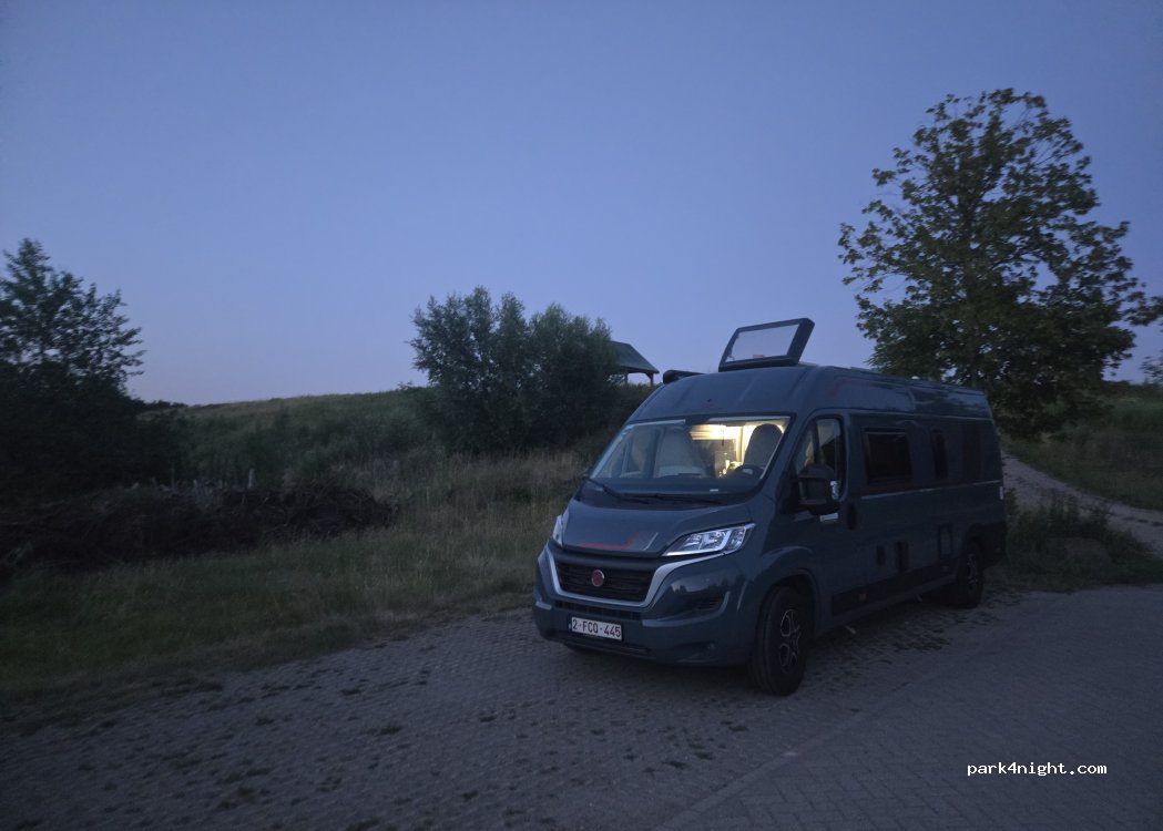 Toller Ort um mit den Hunden spazieren zu gehen. Hier können sie auf dem Gelände auch frei laufen. Auf der Hälfte des Parkplatzes stehen zur Zeit zwei Baucontainer und ein Bagger. Übernachten würden wir hier nicht.