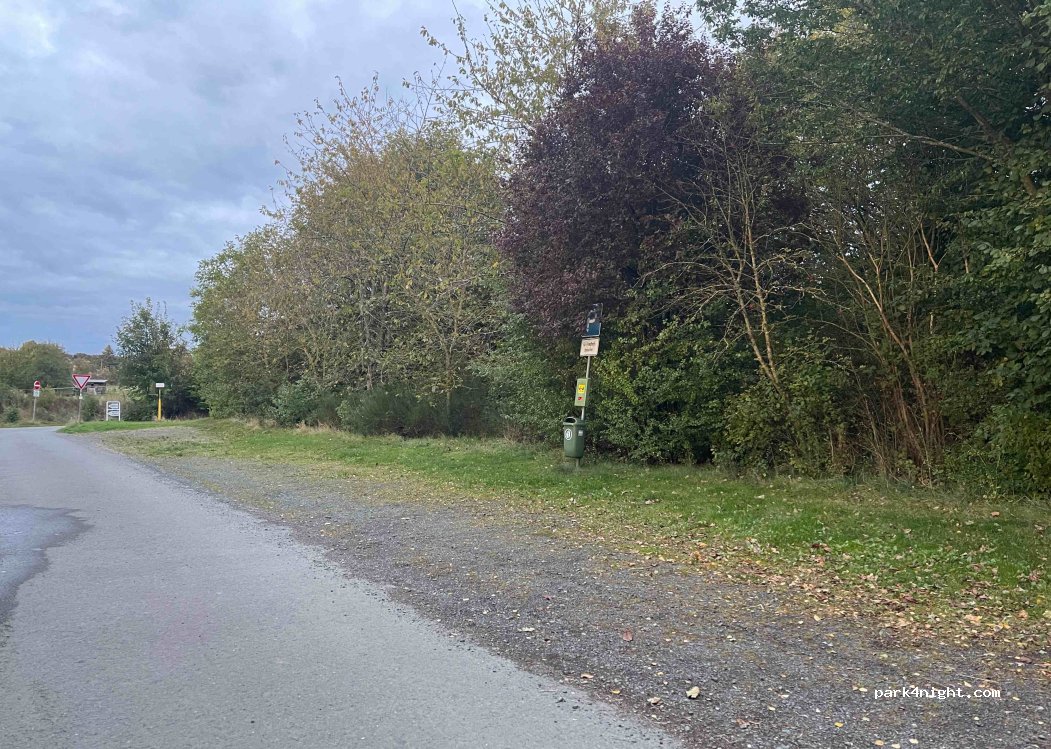 Parkplatz neben dem Friedhof.500 m zum Bäcker, Tankstelle. Ausgangspunkt für Wanderungen und MTB Touren.