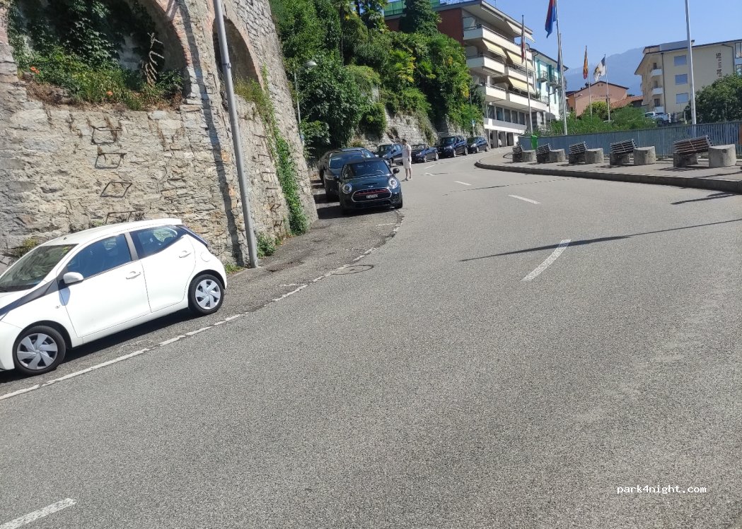 A few parking spaces on the side of the road, for vehicles that are not too wide or too long. Parking with blue disc, limited to 3 hours (from 7 a.m. to 7 p.m.). Ideal for visiting the Madonna del Sasso sanctuary.