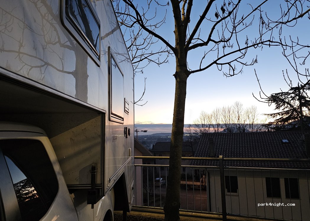 Really nice place considering everything is for free. The road there is steep and curvy. I recommend to follow the bigger street Via Dante Alighieri there. Some cars park on the spots for camping cars particularly in the night but in the early morning all are usually gone. We were there on the weekend and the place was almost full, however on Monday most of the camping cars left.