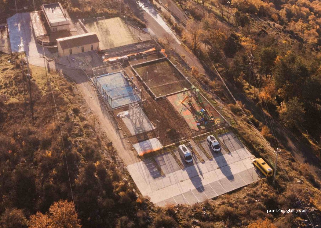 Free camper area with 3 camper spaces and 1 unloading bay, plus a large parking lot with all amenities. Managed by the Municipality of Rocca Canterano -
