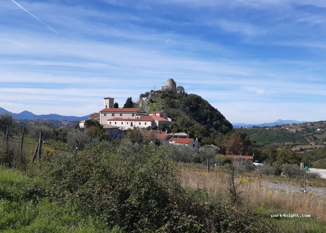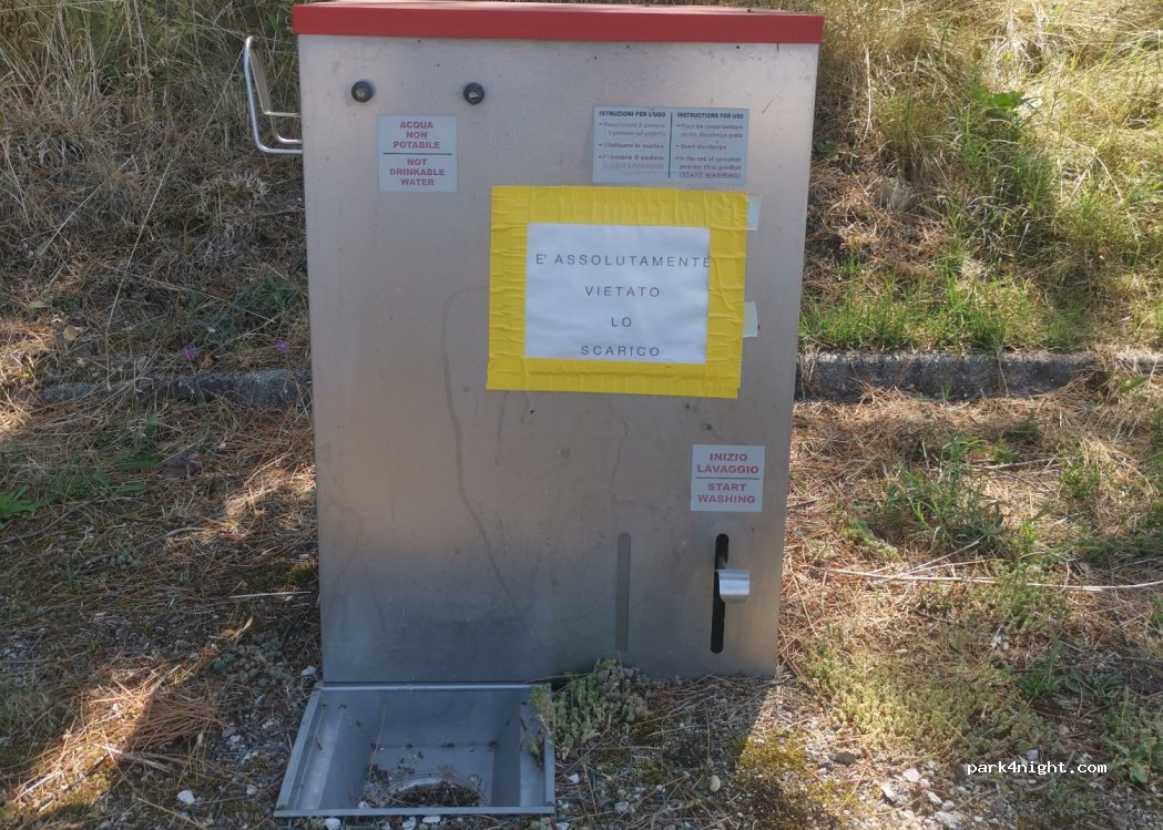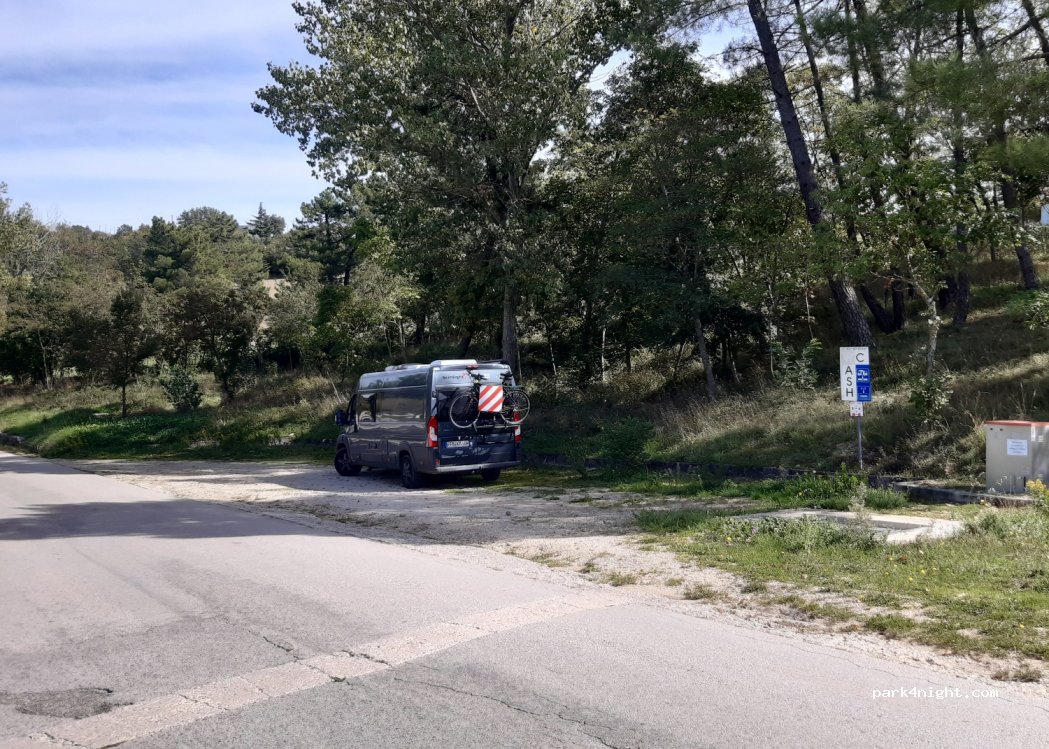 Parkplatz an einer Straße nahe Rocca San Felice. Prima um den Ort anzusehen. Hier kann man auch Toilette und Abwasser entleeren, es gibt aber kein Wasser. Zum schlafen zu laut.