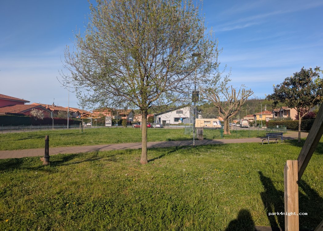 Ampio parcheggio vicino ad un parco, in zona residenziale, ho sostato una notte si dorme bene, a piedi in 15 minuti si arriva al castello ed altri 5 minuti scendendo la scalinata si arriva al paesino Borghetto molto carino, sembra una piccola Venezia.