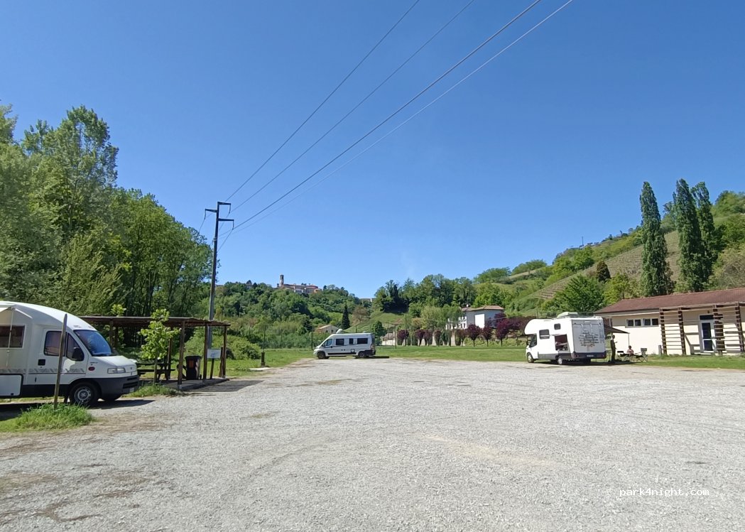 Abbiamo parcheggiato qui una domenica mattina e c'era tantissimo spazio libero, uno spiazzo in piano con scarico grigie, tanto verde e panchine coperte per pranzare. Cantine Vaglio fronte strada dove comprare ottimo vino e partenza del sentiero dei nidi di Vinchio che conduce alla panchina gigante, bellissime passeggiate sulle colline e in mezzo ai boschi. Grazie per questo bel posticino!