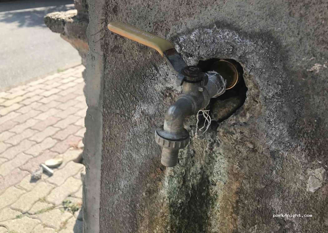 Prima drinkwater met veel druk. Aansluiting met schroefdraad. Parkeren langs de weg mogelijk. Leuke koffie bar the corner om de hoek.