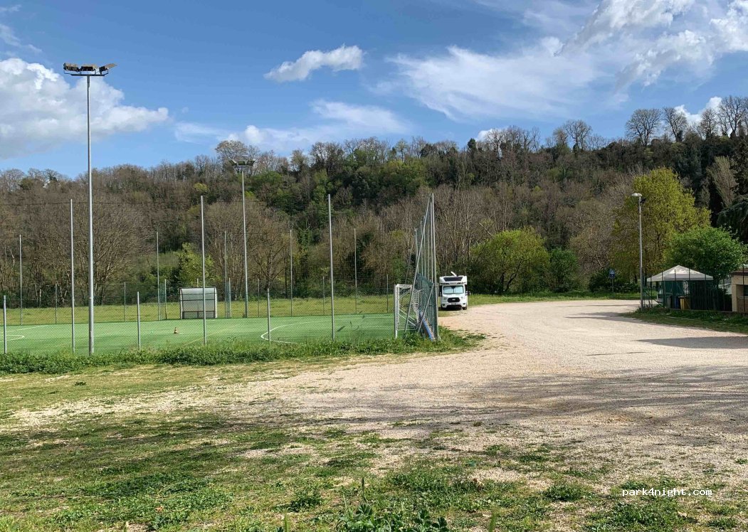 Parcheggio gratuito campo sportivo, acqua potabile per carico. a 10 minuti a piedi dal paese, inaccessibile in camper