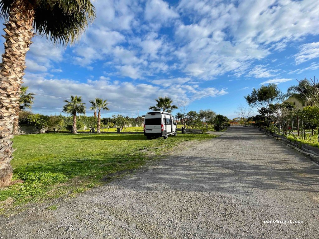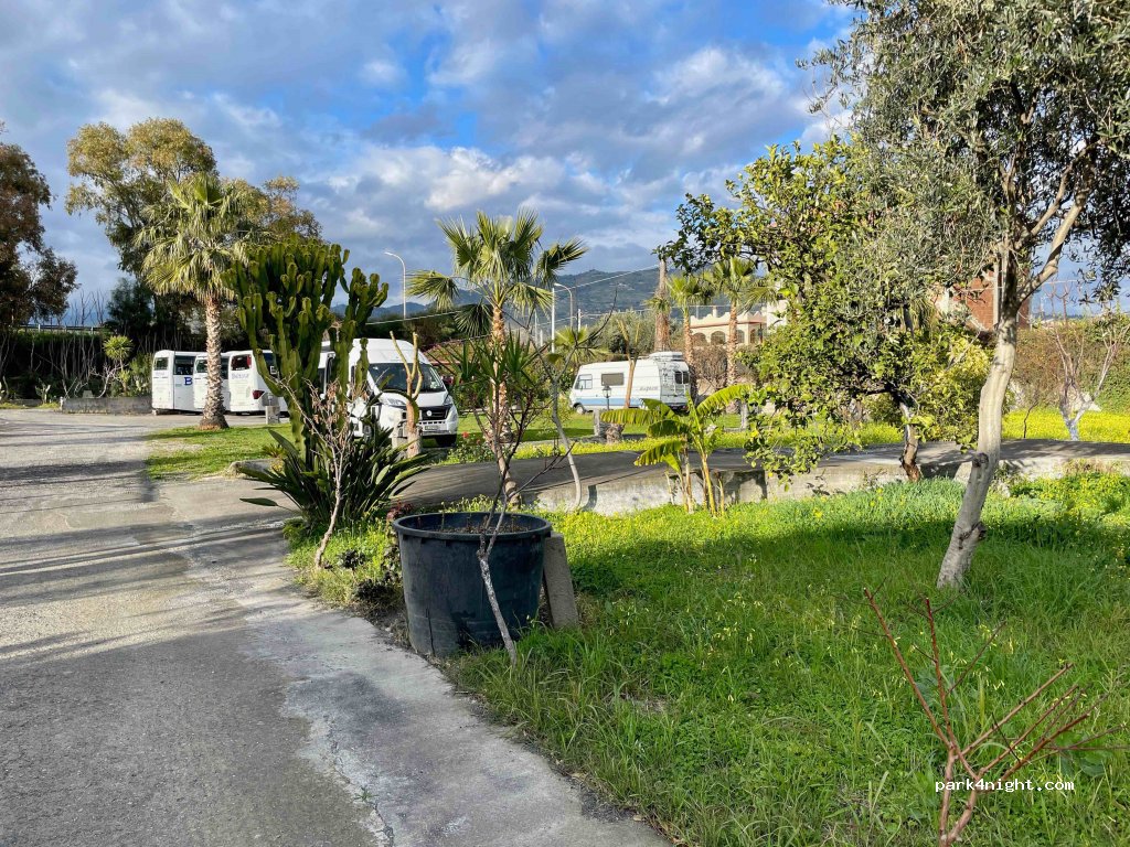 Bella area, curata, su erba tra palme e agrumeti. Tutti i servizi funzionanti e puliti. Possibilità di navetta per Taormina a 40 euro AR. Prezzo 20 euro. Punti negativi: l'isolamento (si trova in una zona industriale, isolata da centro e servizi se non si ha uno scooter) e per il rumore dell'autostrada che scorre a fianco e, saltuariamente anche del treno piu in lontananza.