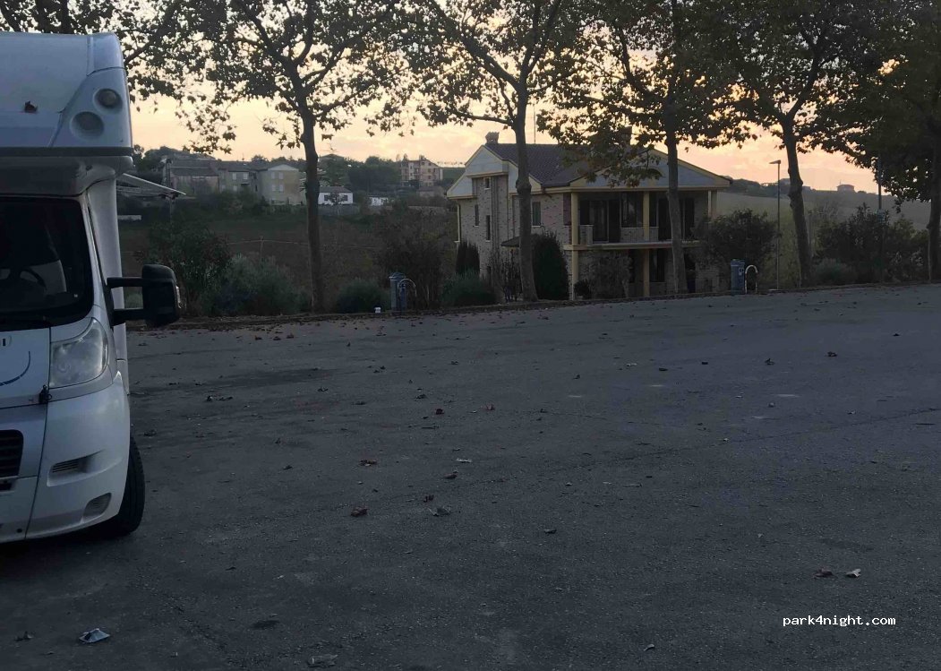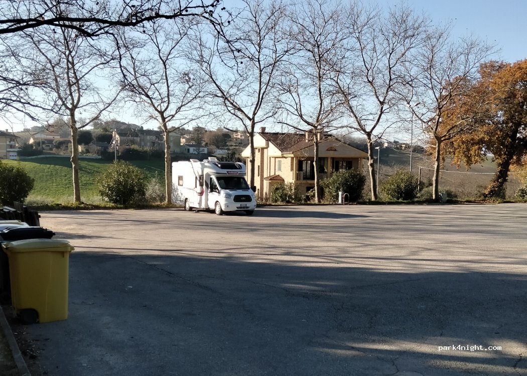 Sehr schöner Stellplatz für eine Nacht. Wifi der Gemeinde (man soll nur eine lokale Nummer anrufen und es wird aktiviert) und Strom. Mülltonnen in der Nähe sowie Grillplatz. Ein Stern weniger nur weil Wasser und Toiletten abgeschlossen sind. All der Rest ist super. Ortsmitte ist wunderschön und einen Spaziergang wert (nur 600 mt vom Stellplatz entfernt) . Outlet von Nero Giardini in der Nähe.