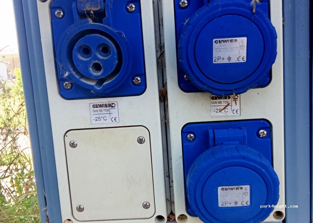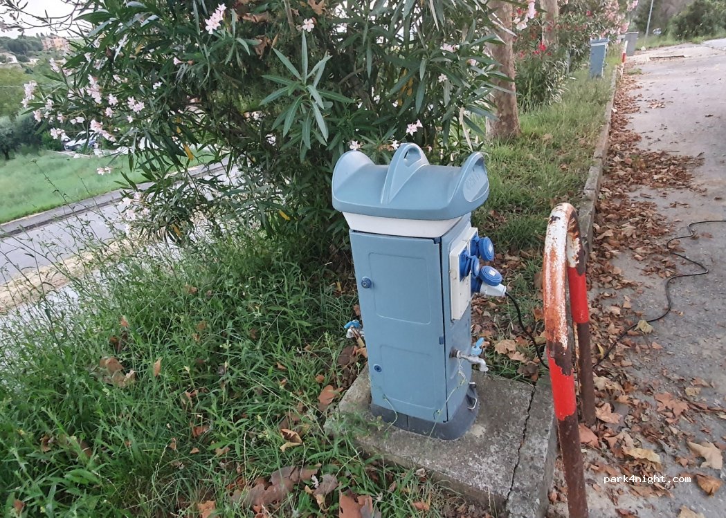 Ottimo parcheggio ben illuminato, corrente gratis, abbastanza frequentato la sera per le partite nel palazzetto qui affianco. Acqua potabile funzionante, nel parcheggio c'è una fontanella affianco ai bidoni della spazzatura. Unico problema è che da poco la zona scarico acque nere è grigie è intasata, agibile ma intasata. Non buttate mai la carta igienica dentro!!!!
