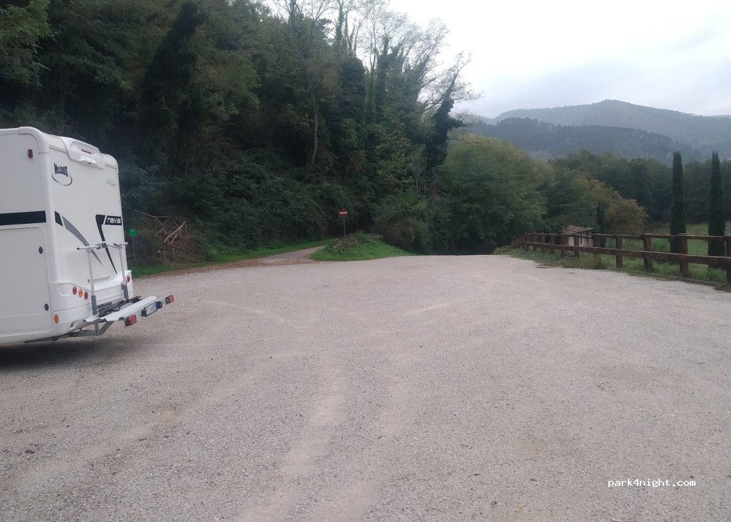 Grand parking plat. Route étroite pour y arriver. Excellent pour visiter la ville de Pieve di Compito lors de l'exposition des anciens camélias de la Lucchesia. Calme et silencieux sauf la cloche de l'église voisine qui sonne toutes les heures.... et demies !!!