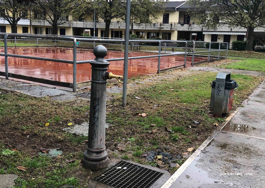 Fontana d'acqua accanto al campo da basket.