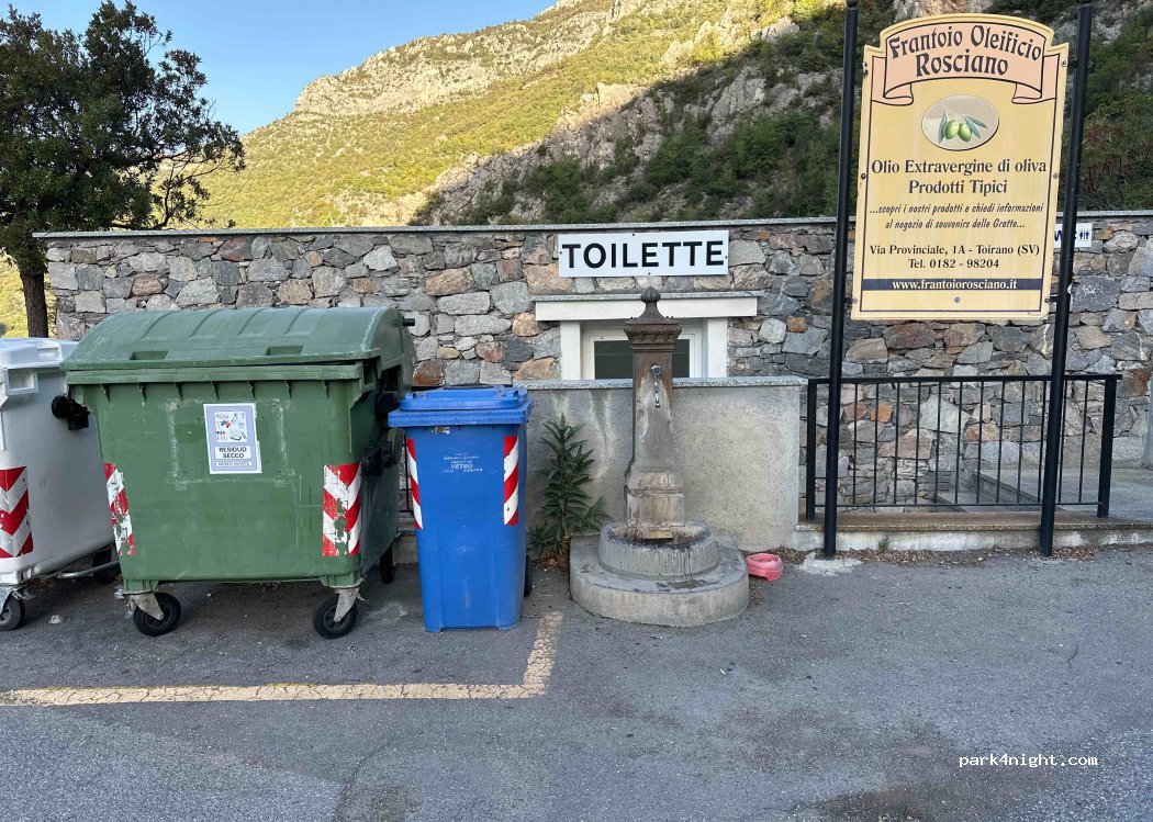 Fontanella nel parcheggio delle grotte. Sono inoltre presenti i contenitori per la raccolta differenziata e i servizi igienici. Aperto solo 9.30-12.30 e 14.00-17.00.