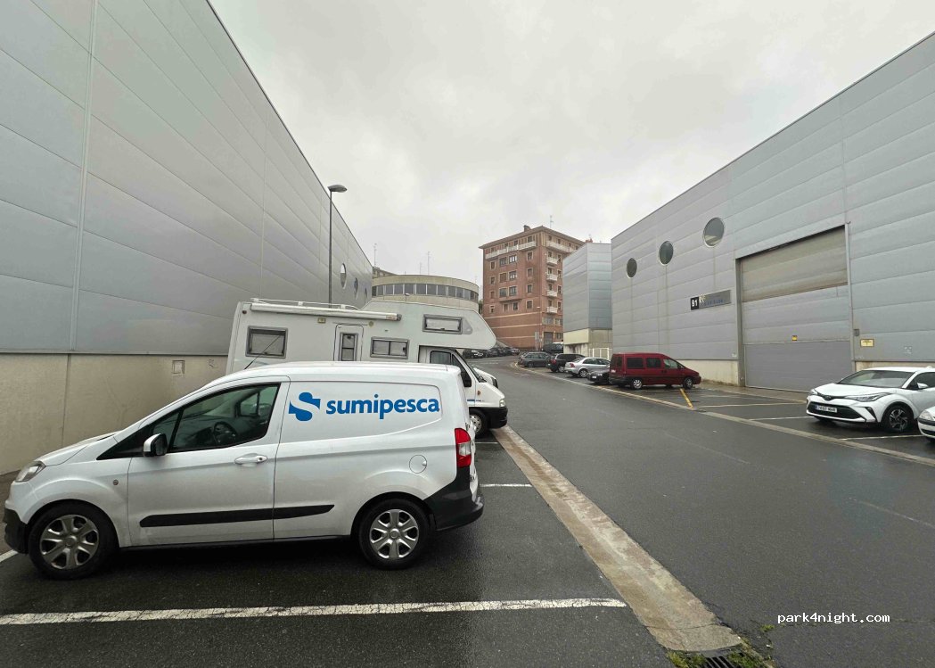 Es un parking en un polígono industrial, no es exclusivo de autocaravanas, pueden aparcar turismos y cualquier vehículo que quepa en los lugares de estacionamiento. La señal indica Parking y debajo una autocaravana y las coordenadas del parking de ACs de Irun. Buen lugar para visitar el precioso pueblo de Pasai Donibane/Pasajes de San Juan y también, San Pedro, Donostia/San Sebastián etc