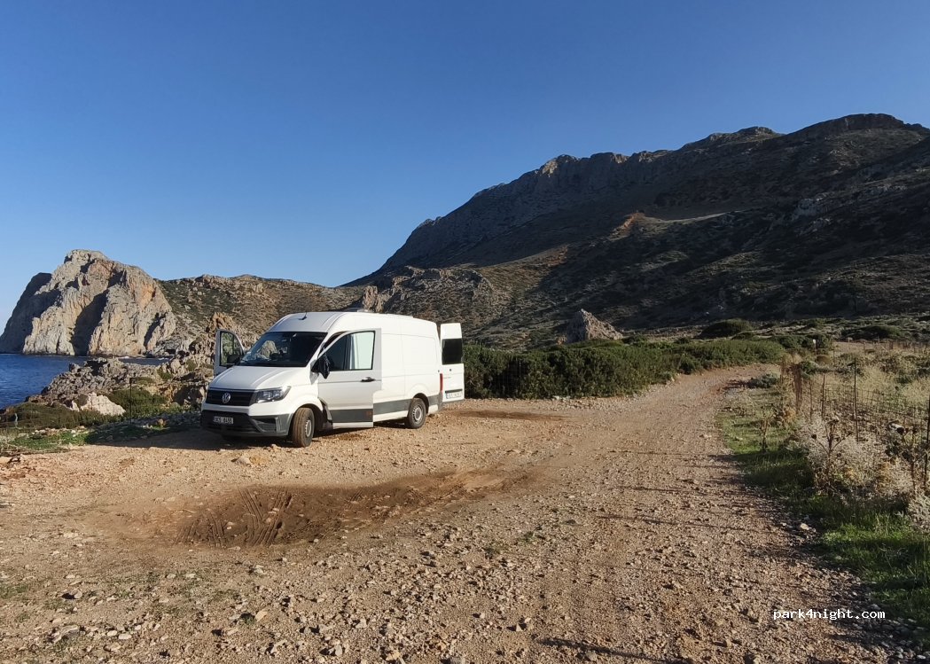 Good place to stay. Not far from the route to Balos beach - a beautiful but challenging trek. We spent two nights here, before and after the trek. The night was peaceful and quiet. The place is big enough for two vans. Another place where you can leave your car is at the excavations. I do not recommend it for large campers, the road goes through olive groves and is narrow.