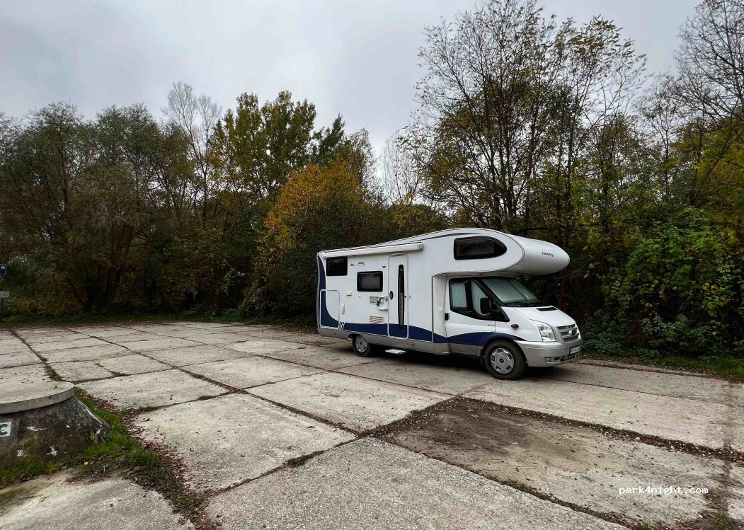 Emplacement très calme, légèrement en pente sur les dalles mais possibilité de trouver du terrain plat sur la partie en terre. Le lac est joli mais l'eau est sûrement très polluée car nous avons vu de nombreuses carpes mortes.