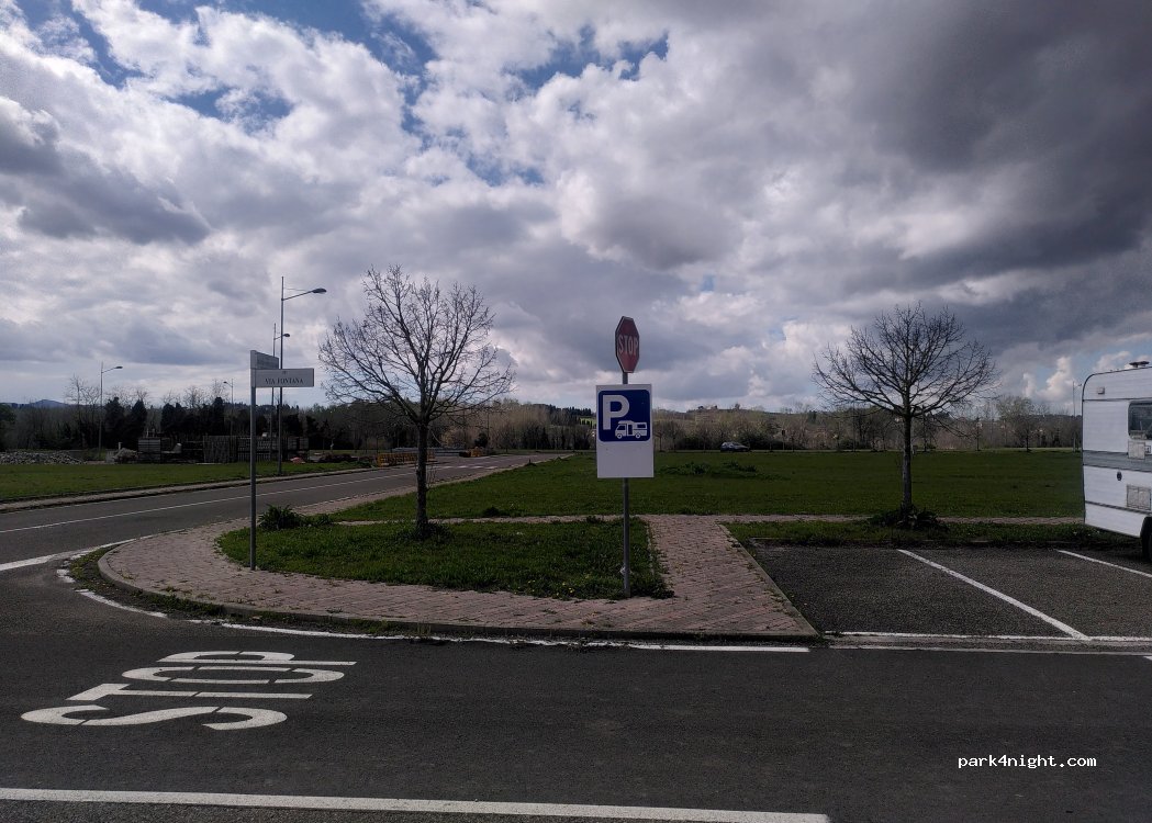 Parcheggio tranquillo per passare la notte, vicino al supermercato Coop. Per la visita del borgo meglio sostare nel parcheggio dedicato, a lato del cimitero.