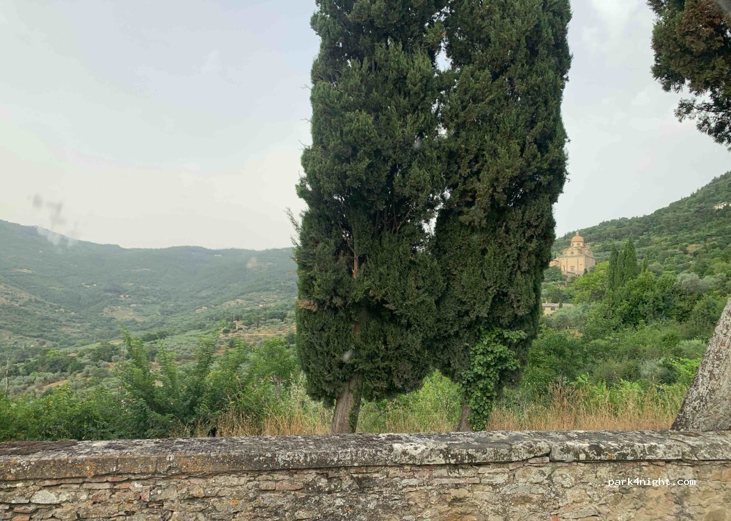 5 stars for the fact it’s close enough to Cortona to walk in and free and has space for vans or Mohos. We didn’t stay here just walked past on our way up. We stayed at the aires down the hill.
