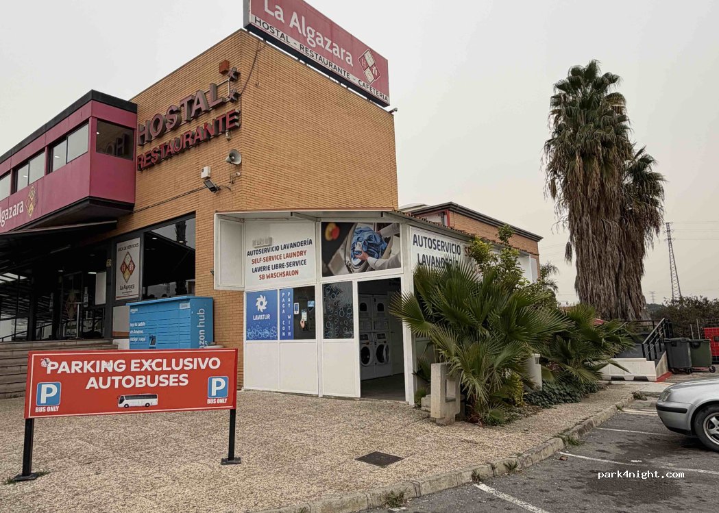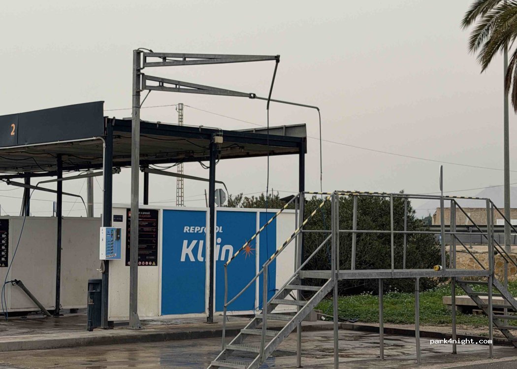 Autohof mit LPG, Brauchwasser- und Luftversorgung an der Repsol-Tankstelle. Daneben Waschplatz für Wohnmobile. SB Wäscherei am Restaurant. Burger King. Man kann gut mit allen Größen parken