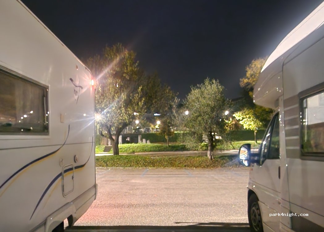 Parcheggio ampio . Anche il mio camper da 7,40mt ha trovato da parcheggiare con lo sbalzo sull'isola. A pochi passi dal paese,molto bello , è dotato di bagni gratuiti e fontanella per carico acqua. Di notte molto silenzioso e alla mattina si sentono gli uccellini che cantano.