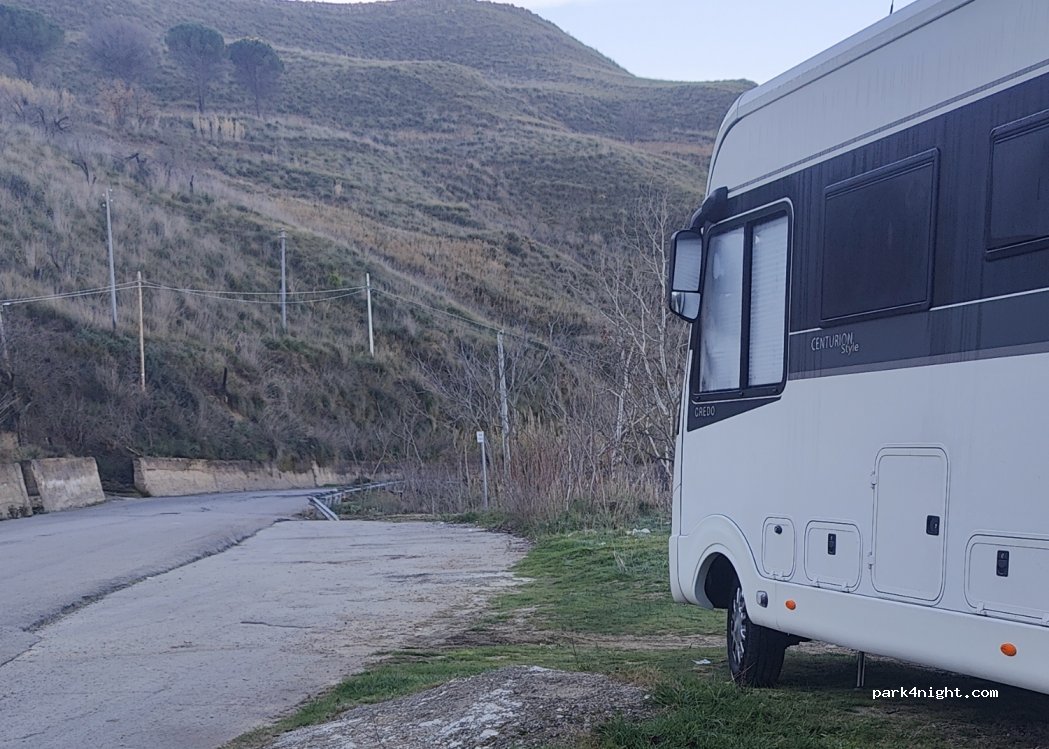 Parcheggio lungo la strada con vista mozzafiato. Passano solo poche macchine, silenziose di notte. 5 minuti dall'autostrada. Buono per una notte.