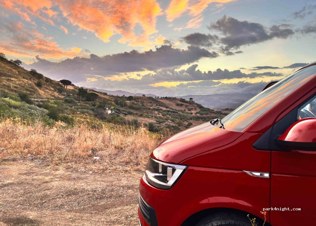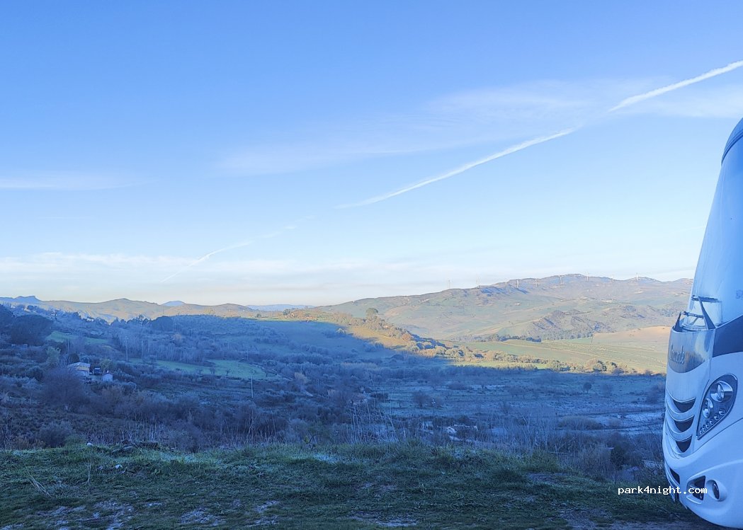 Parken am Straßenrand mit herrlicher Aussicht. Nur wenige vorbeifahrende Autos, nachts ruhig. 5 Minuten von der Autobahn. Gut für eine Nacht.