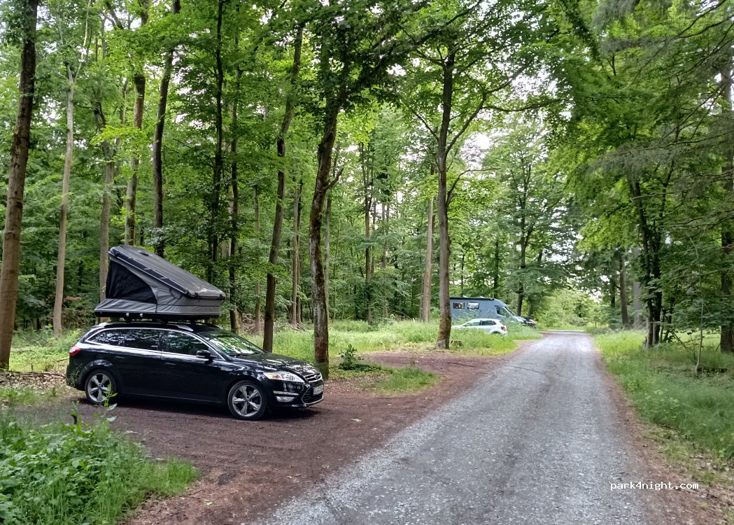 Wald- und Wanderparkplatz. Weit genug von der Straße weg, so dass man ruhig schlafen kann. Eben und ohne Keile möglich. Keine Mülleimer oder Sitzmöglichkeiten!