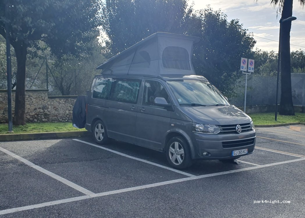We parked here due to the coach parking site where camping cars park officially being full, to be fair this place is much better lovely and quiet and at a dead end road. You need to level the van, apart from that a lovely peaceful evening and night. zero problems.