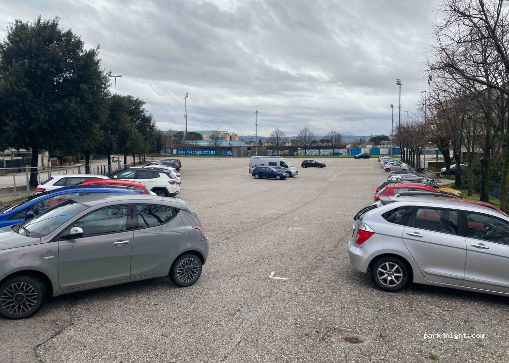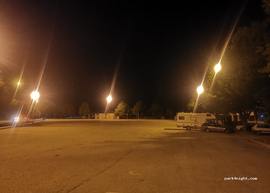Ci siamo fermati un giorno per visitare Foligno, i posteggi sono per le auto, ma sono abbastanza lunghi, pur sporgendo sia nella parte anteriore che posteriore, non creava intralcio, posteggiato camper che con porta bici e mi 7.80. Non ci sono servizi ed è gratuito, differenza di altri posteggi nella zona non ci sono divieti e non c’è GENTE STRANA CHE NE ABBIA PRESO IL POSSESSO