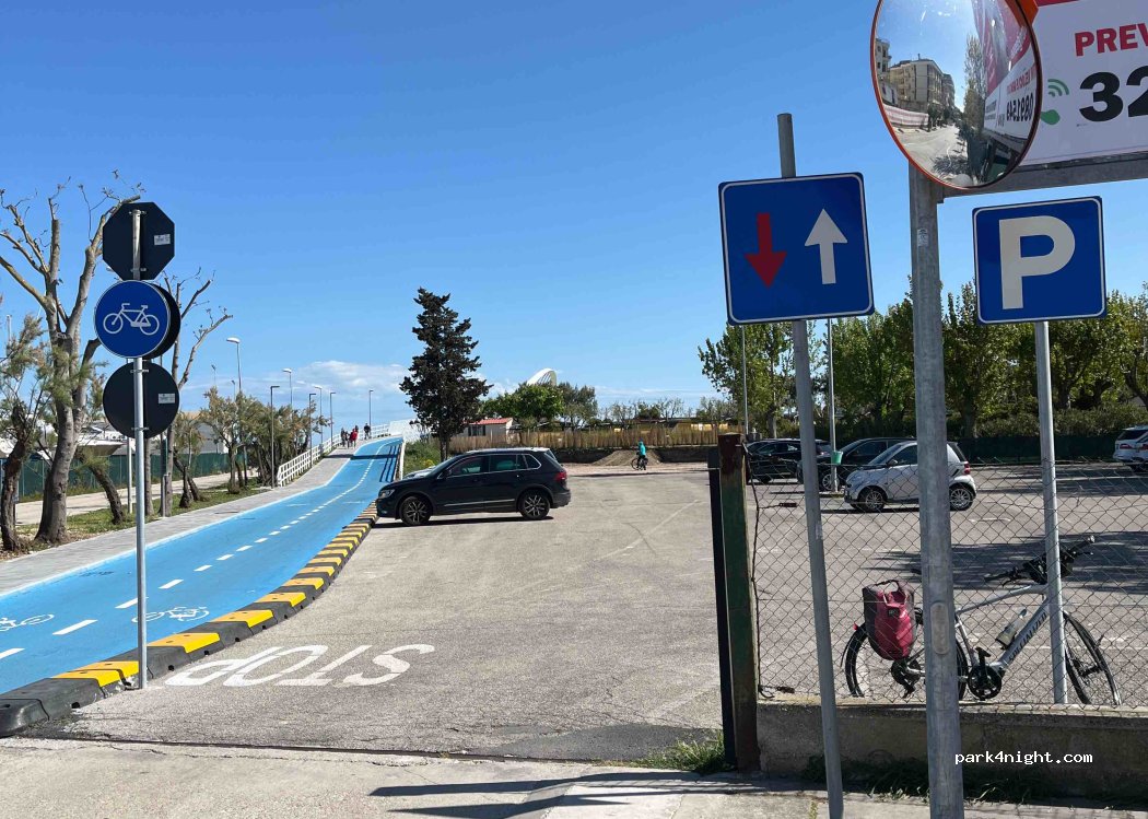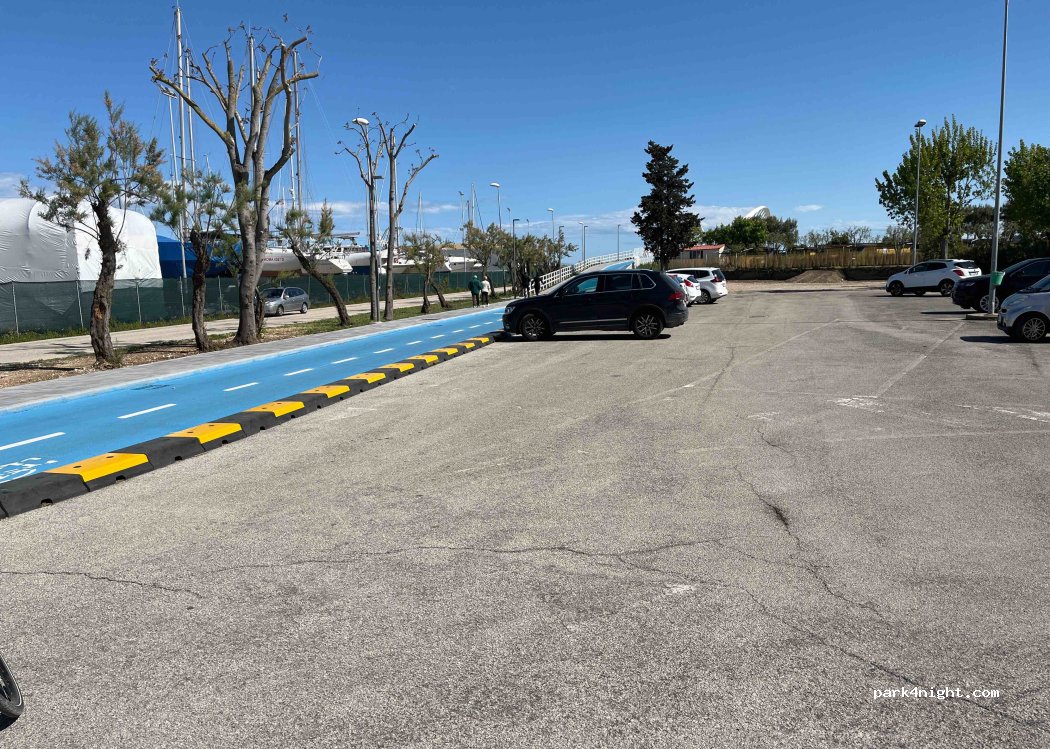 Parcheggio vicino al porto appena fuori da una pista ciclabile costiera.