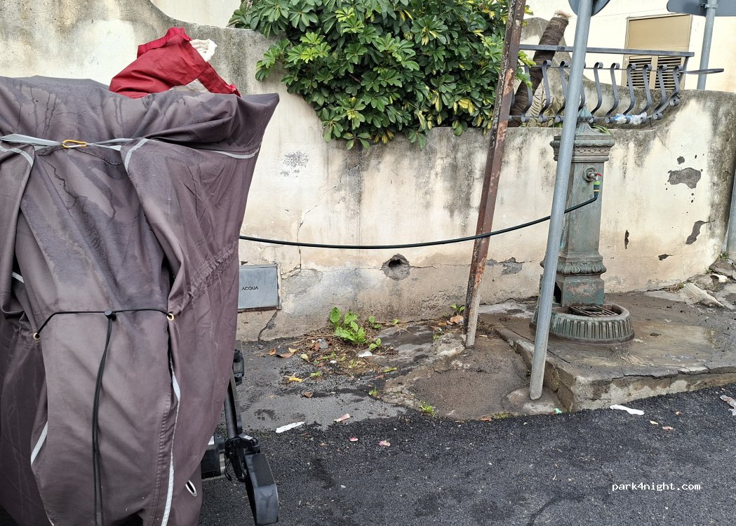 Straße ist sehr viel befahren. Parkmöglichkeiten eher schlecht aber machbar mit 7,40 Meter Wohnmobil. Wasserdruck ist ok, man braucht etwas Zeit. Wasserhahn mit Gewinde und man benötigt einen eigenen Schlauch.