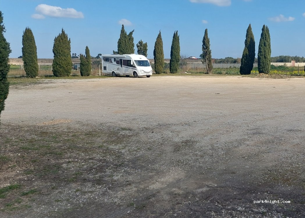 Parcheggio pianeggiante e molto tranquillo con vista sui campi vicino a un centro sportivo e sul retro dei campi da tennis ea 5 minuti a piedi dal centro città.