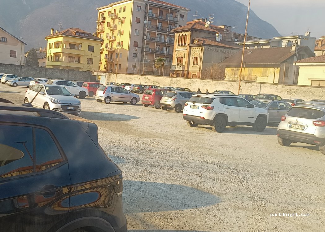 Parcheggio gratuito a due passi dal centro di Domodossola,su sterrato,illuminato,molto tranquillo la notte.nel weekend è preferibile arrivare al venerdì sera o al sabato pomeriggio perché al sabato mattina a Domodossola c'è il mercato e il parcheggio è molto pieno