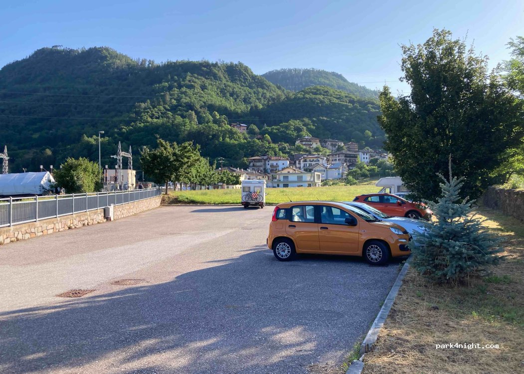 very good spot for the night, the river next to yhe parking lot, we didn't hear any noice at night. almost 100% flat, lots of space and beautiful town!