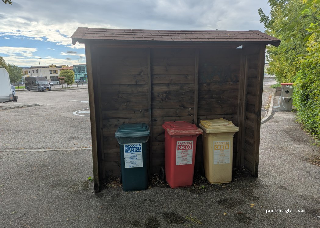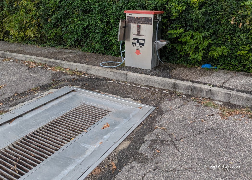 Area piccola ma dotata di tutto il necessario.3 colonnine da non usare tutte insieme xchè salta tutto.Si paga tramite bonifico x il pernottamento,6€ 24h.Scarico veloce gratuito.N.B:dietro casetta di legno,trovate contenitori spazzatura differenziata.