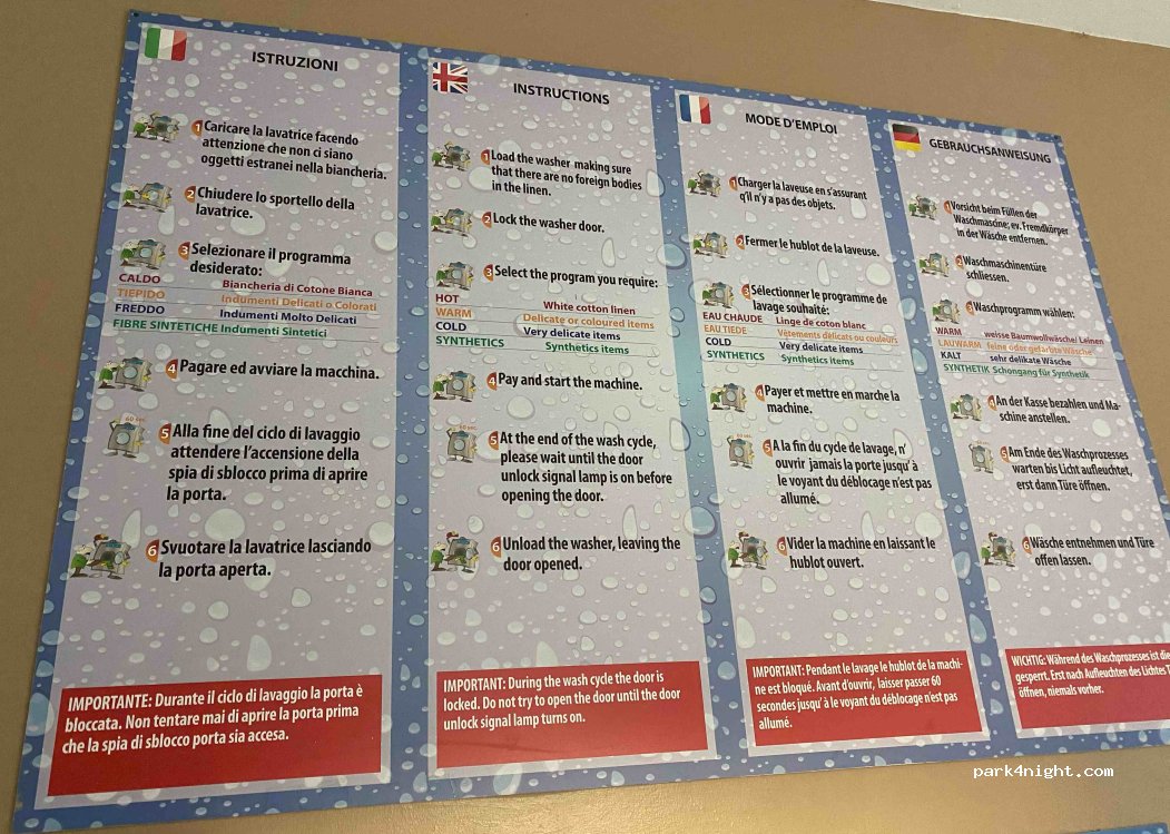 Bucato pulito. due lavatrici piccole (8kg) e due grandi (16kg), quattro asciugatrici (16kg). Ampio parcheggio dall'altra parte della strada.