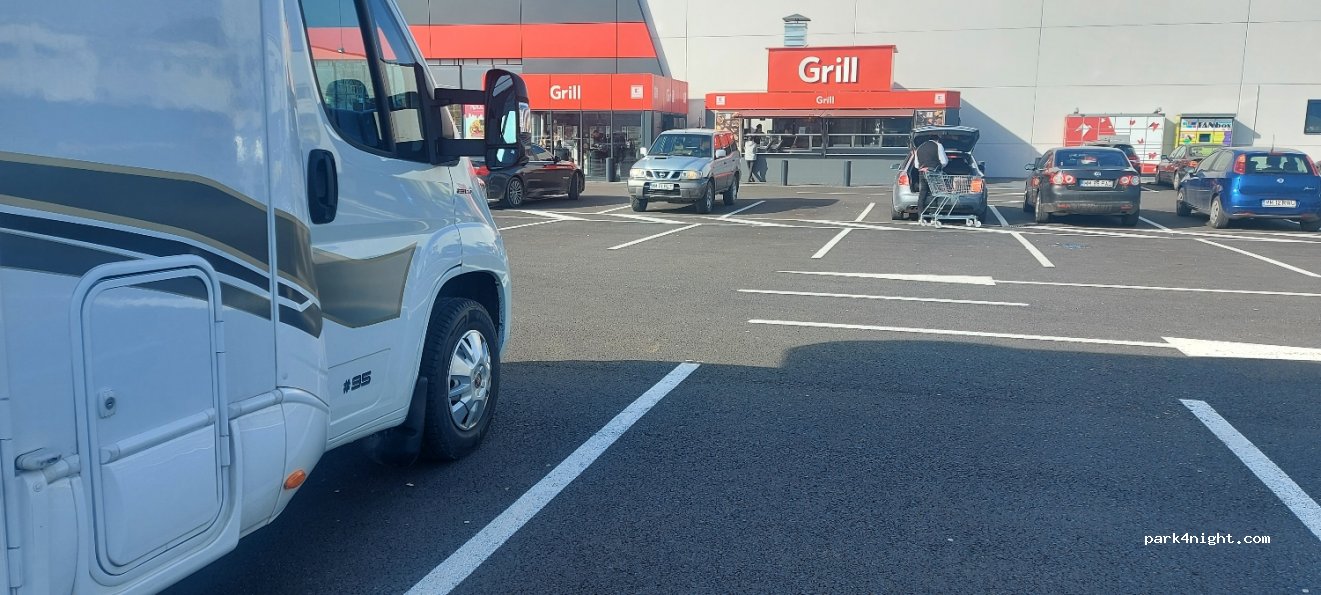 Nouveau parking pour hypermarché. pas de limite haute. il y a un bon grill bon marché dans le parking, des distributeurs automatiques de café, des toilettes dans le supermarché.