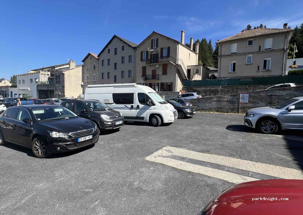Parking en pente au revêtement dégradé dans un environnement moche et peu engagent. Toilettes immondes d'un autre âge. Village sans charme, bref pour la pause de midi Ok sinon passez votre chemin. Il y a quand même une borne de services si besoin.