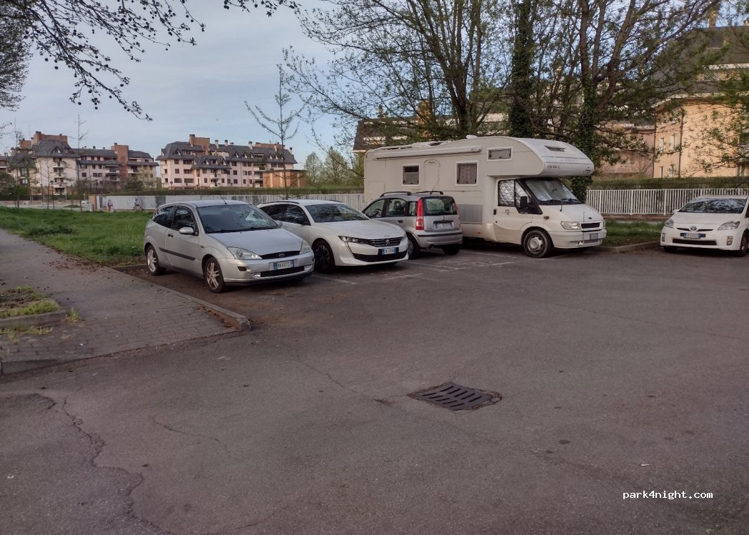 Perfect for spending a night. Possibly also for visiting Milano, but we were only passing - seems a very safe spot in a quiet neighbourhood. No services, no camping, just parking with closed door. Bus stop in about 5 mt distance.