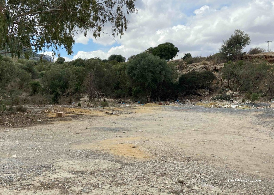 Schäbiger, aber ruhiger Ort neben dem Nationalpark. Die Polizei kam, um Pässe zu kontrollieren und uns wie üblich in Tunesien willkommen zu heißen! Mehrere Stellen entlang der holprigen / durchlöcherten Straße. Etwas Schatten ist hier verfügbar.
