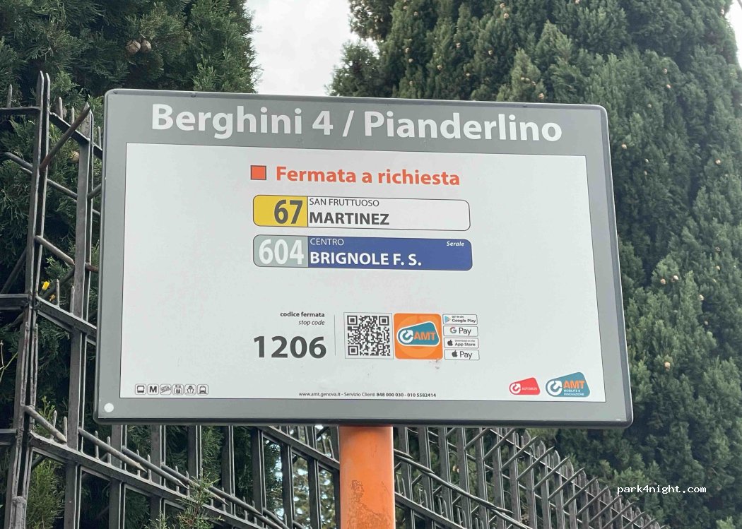 Best spot in Genova. Place of peace in the middle of the nature but close to the city and the center. You can walk in the forest, and go for a hike. There is the bus stop to take you to the center. There are bins and the square is supervised by cameras. Behind the bins the building is a nursery home, from where you can ask water in case