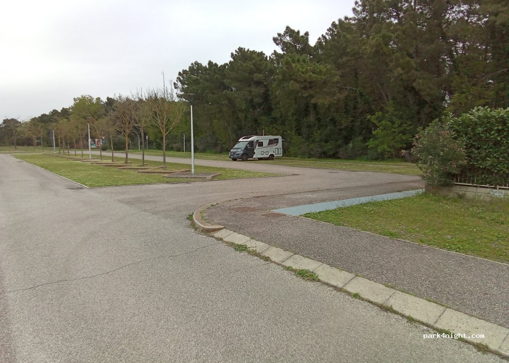 Es un parking amplio y muy cerca de la playa, pero al parecer está prohibido pernoctar onciner dentro de la AC en todo Ravenna, aunque no esté señalizado
